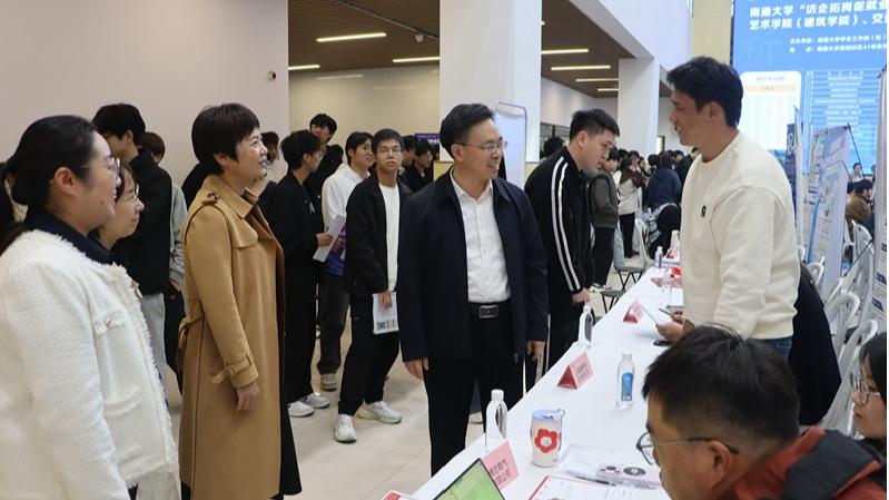 10月28日下午,艺术学院、交通与土木工程学院联合举办2026届毕业生秋季校园招聘会。校党委常委、副校长施佺,副校长陈玉娟深入招聘会现场,与用人单位和准毕业生们深入交流,详细了解参会单位岗位需求和学生求职意向。