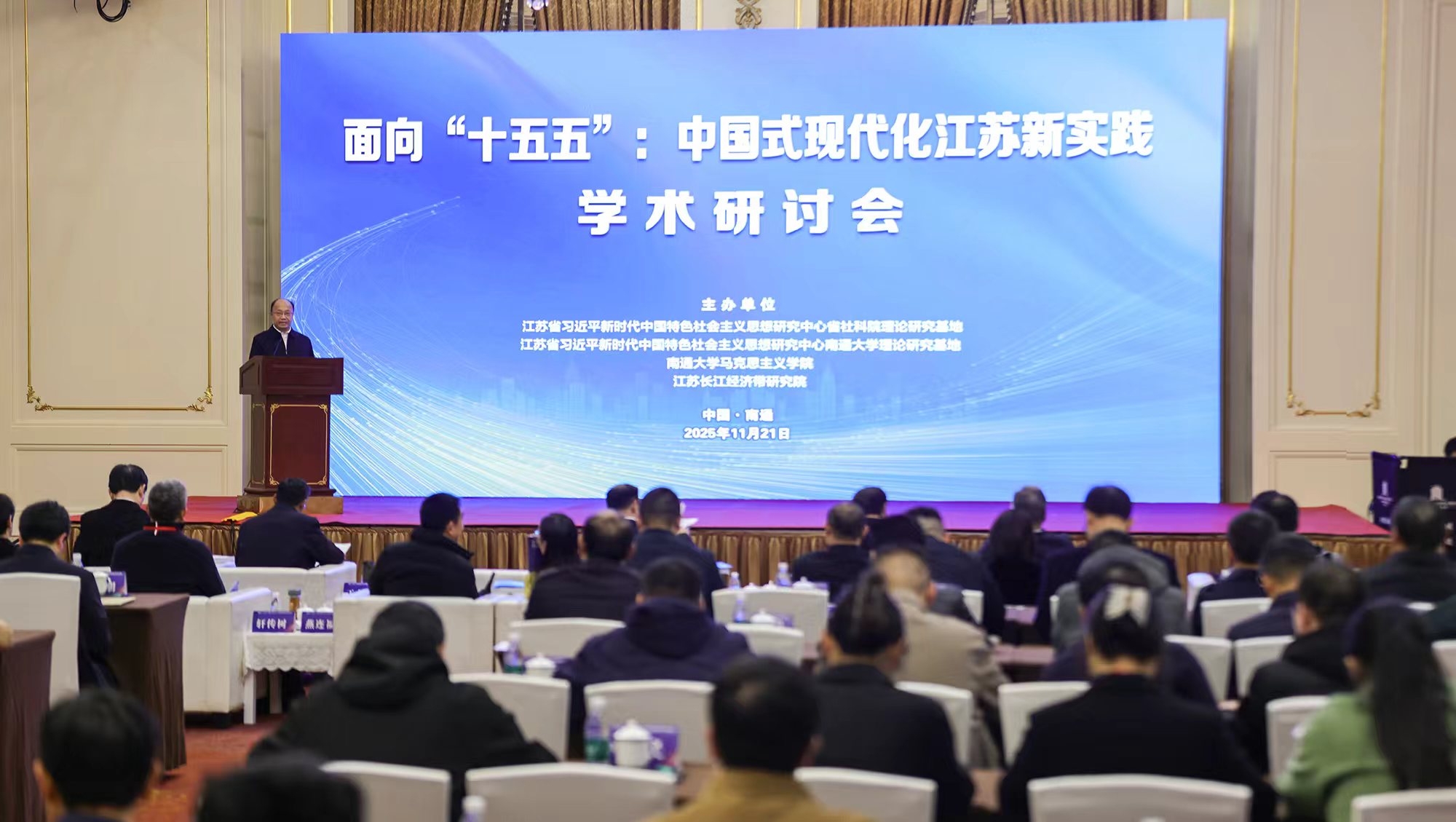 11月21日,“面向‘十五五’:中国式现代化江苏新实践”学术研讨会在我校举行。研讨会由江苏省习近平新时代中国特色社会主义思想研究中心江苏省社科院理论研究基地、南通大学理论研究基地,以及我校马克思主义学院、江苏长江经济带研究院联合举办。来自省内外多家高校、科研院所的专家学者围绕中国式现代化江苏新实践展开研讨,为谱写“强富美高”新江苏现代化建设新篇章凝聚思想共识与实践合力。