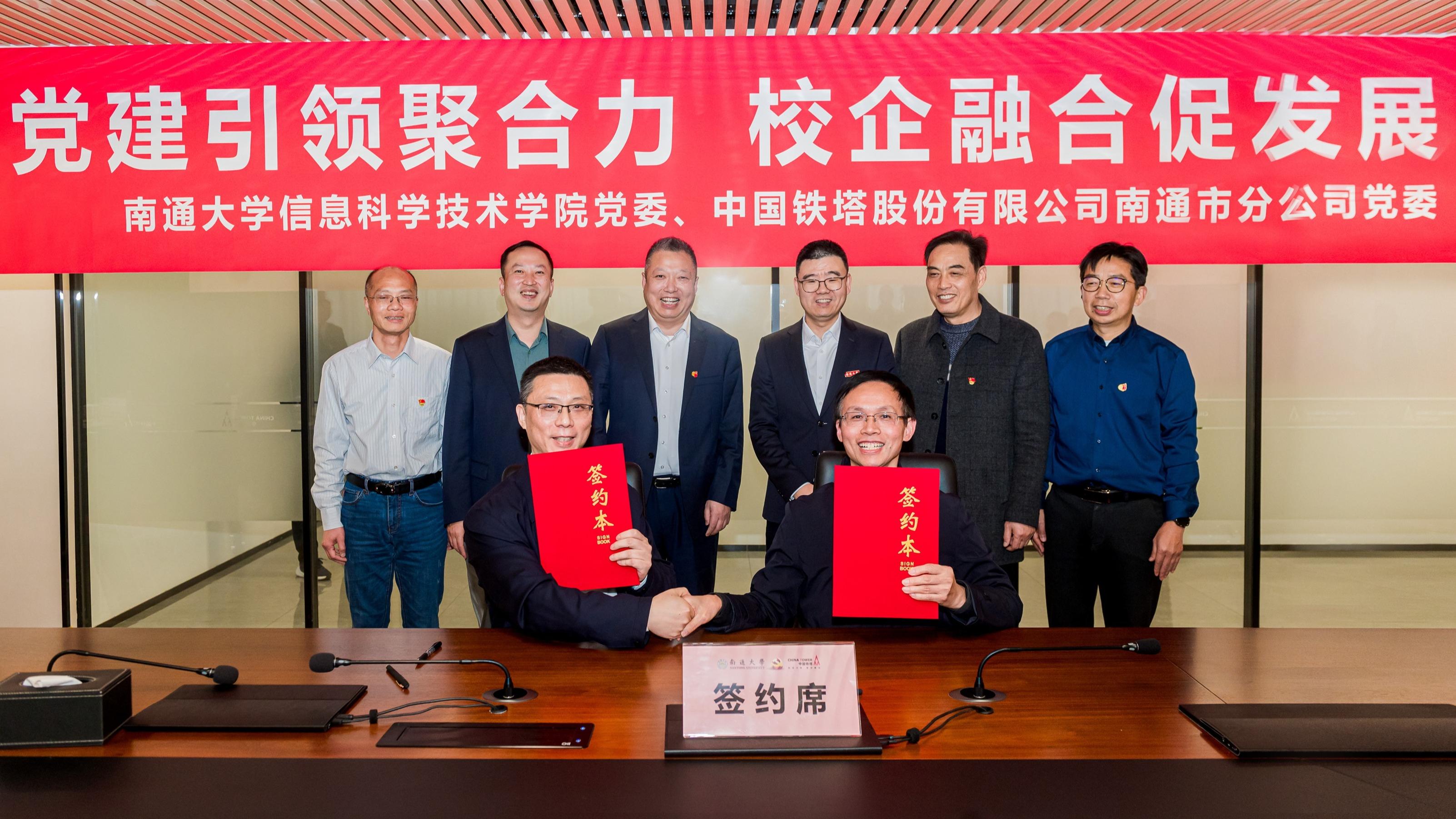 签约仪式上,信息科学技术学院党委书记周平、中国铁塔股份有限公司南通市分公司副总经理王强代表双方签署党建共建协议。信息科学技术学院党委副书记、院长杨永杰介绍了学院发展情况,并就推动双方优势资源共享与技术协同,加速科研成果转化应用等提出建议。
