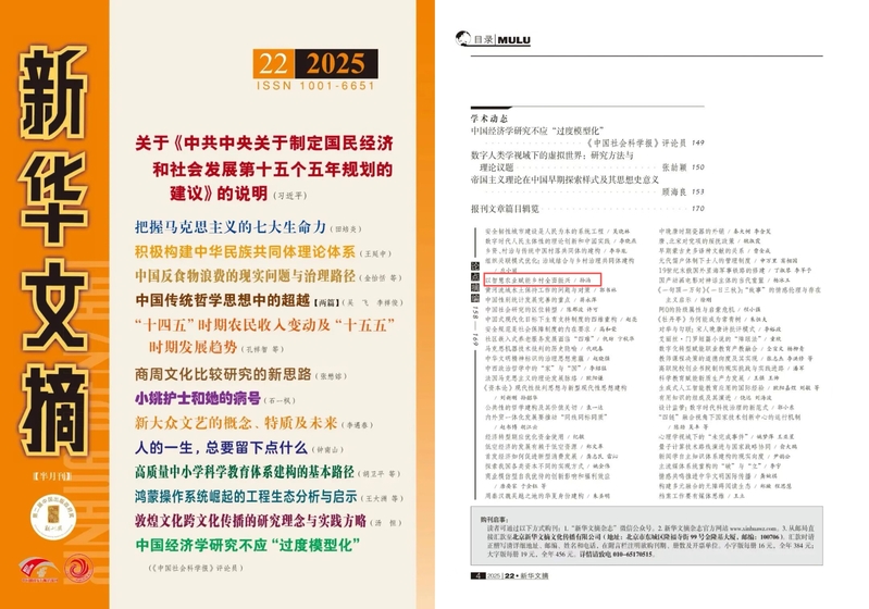 近日,江苏省习近平新时代中国特色社会主义思想研究中心南通大学理论研究基地特聘研究员孙泊在《红旗文稿》刊发的理论文章《以智慧农业赋能乡村全面振兴》,被《新华文摘》2025年第22期论点摘编。