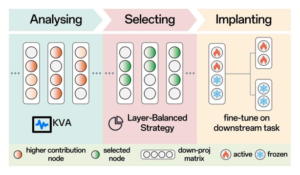 参数微调虽能有效使预训练模型适配下游任务,却不可避免地面临灾难性遗忘的风险,比如模型在适应新任务过程中可能丢失预训练阶段所习得的关键知识。为在统一框架下系统缓解这一挑战,该研究提出一种基于参数高效微调的低损伤知识植入方法。该方法深度融合了近年来对Transformer架构中知识存储机制的结构性理解,通过精细化参数干预,在实现任务适配的同时,显著减轻对已有知识的覆盖与破坏。在多个真实场景的微调任务中,本研究提出的方法相较于当前主流微调方法展现出显著优势。实验结果表明,该方法在维持模型通用能力方面表现尤为突出,同时在特定任务性能上可与全参数微调及其他高效微调方法相媲美,能够有效平衡“任务特异性适应”与“通用能力保留”之间的张力。该研究成果不仅为有限算力下的高性能、低遗忘模型优化提供了可行路径,其机制驱动的设计思路也可为构建更稳健、可扩展的预训练—微调范式提供新的理论视角与工具,具有较高的科研价值和较好的应用前景。