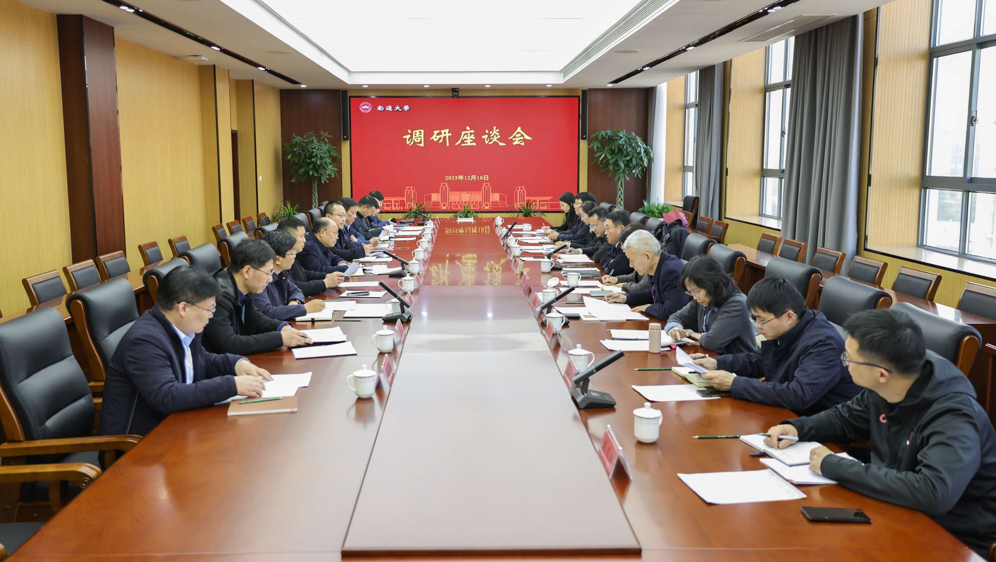 12月18日下午,南通市副市长于立忠一行来校调研。校党委书记杨宇民在座谈会上讲话。校党委常委、副校长施佺,校党委常委、副校长华亮出席活动。