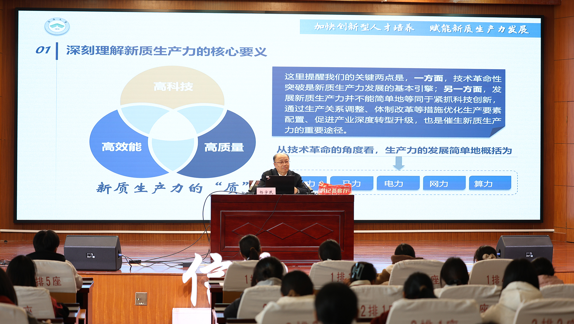 杨宇民以《加快创新型人才培养 赋能新质生产力发展》为主题,为医学生讲授形势与政策课。课上,他深入阐释了新质生产力的丰富内涵,指出新质生产力是以创新为主导,具有高科技、高效能、高质量特征的先进生产力形态,关键在于人才。他强调,医学领域的新质生产力体现在新劳动者、新劳动对象和新型产业三个维度。结合学校实际,他还介绍了学校在创新人才培养方面的举措与成效,引导学生将创新追求融入专业学习中。整场课程内容详实、脉络分明、讲述生动,深深触动了在场师生的思想共鸣。杨宇民勉励医学生们珍惜在校时光,夯实专业基础,注重培育创新思维与实践能力,勇担时代使命,用专业所长为国家高质量发展注入青春动能。