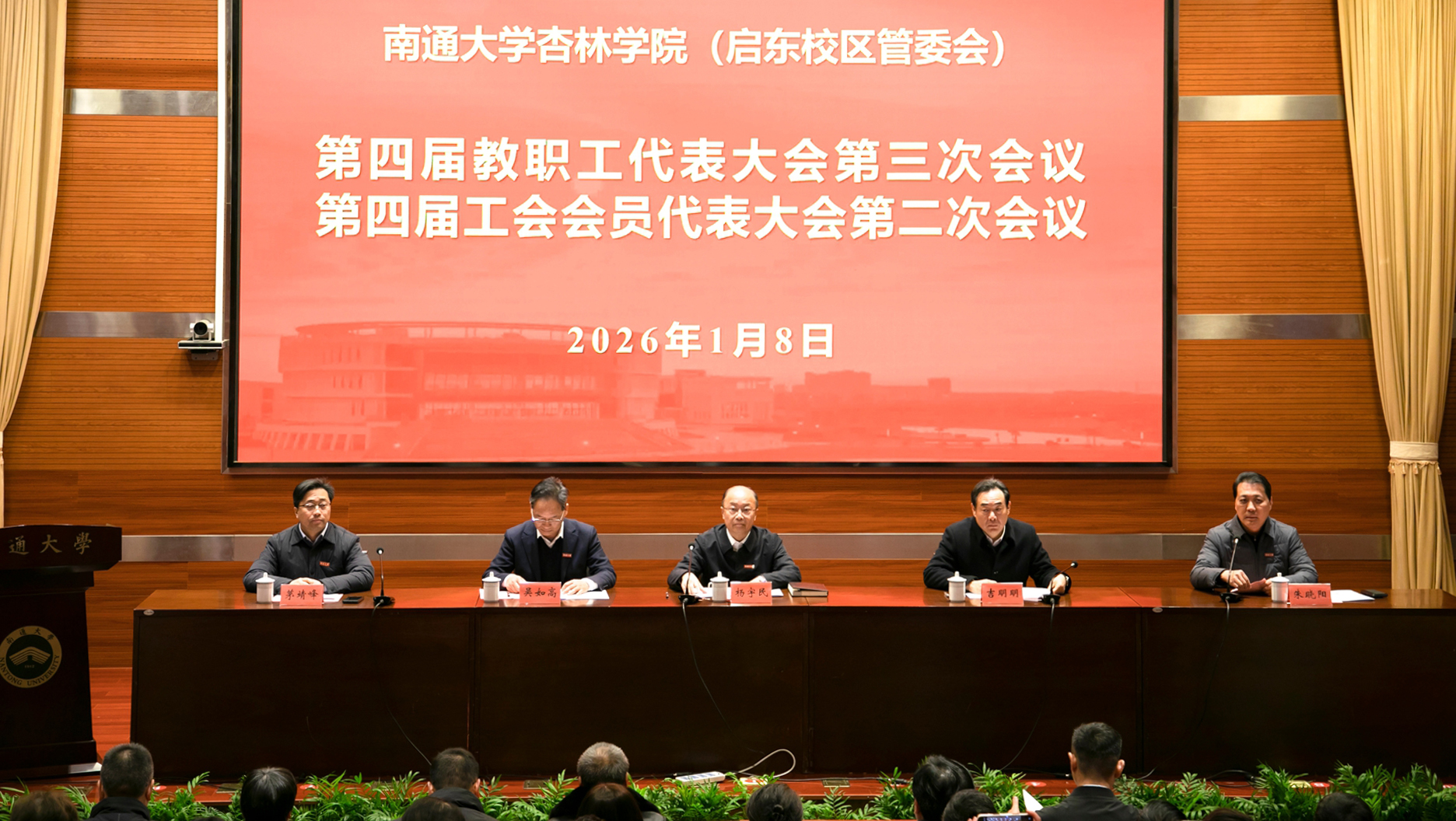 1月8日上午,杏林学院(启东校区管委会)召开第四届教职工代表大会第三次会议、工代会第二次会议。校党委书记杨宇民出席会议并讲话。校党委常委、副校长、杏林学院理事会理事长吉明明,校党委常委、组织部部长、杏林学院理事会副理事长吴如高出席会议。