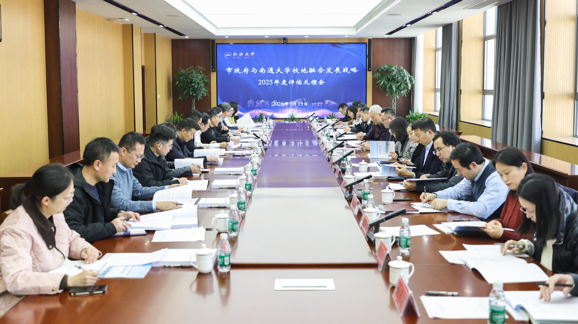 1月15日下午,南通市政府与南通大学校地融合发展战略2025年度评估反馈会在我校召开。校党委常委、副校长吉明明出席会议并讲话。南通市教育局三级调研员许新海主持会议并讲话。