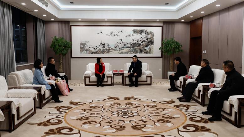 张霓对我校近年来的办学成就与侨务工作给予高度评价,对王建浦长期以来为侨界事业发展、高校侨务工作推进及海外人才引育所做的积极贡献表示衷心感谢。她表示,此行既是表达对侨界专家的关怀与重视,也是为了深入倾听侨界心声,精准对接高校侨务工作需求,进一步推动侨界资源与高校优势精准对接,在凝聚侨心、汇集侨智、发挥侨力上持续发力。她希望今后进一步深化资源整合,搭建侨智服务平台,拓展校侨联动路径,引导侨界师生把个人发展融入国家战略与地方建设,推动侨界人才在科研创新、成果转化、国际交流等领域发挥更大作用,进一步凝聚侨界力量,服务江苏高质量发展大局。