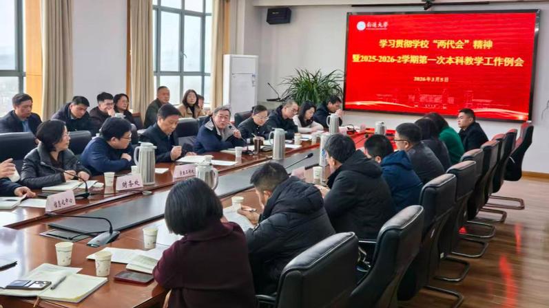 教务处处长姚登兵传达学校第五届教职工代表大会、第四届工会会员代表大会第二次会议精神,总结2025年本科教学工作,并部署2026年重点工作。教学质量管理处处长季玲作2025-2026-1学期课堂教学质量提升阶段性汇报。相关部门和学院作交流发言。