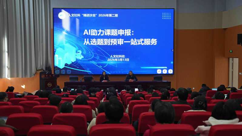 为帮助我校教师紧跟数智时代学术发展趋势,提升运用AI技术开展创新研究与课题高效申报的能力,2026年第二期人文社科“精进沙龙”举办主题为“AI助力课题申报:从选题到预审一站式服务”活动。
