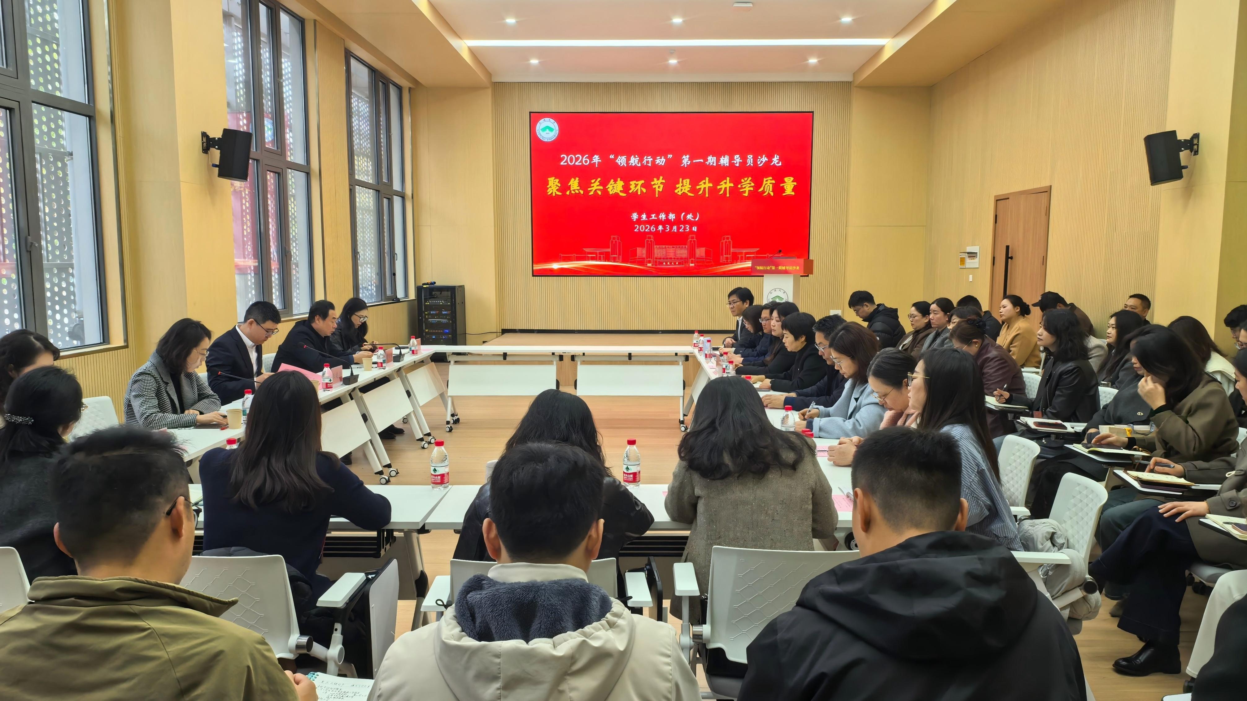 3月23日上午,我校举办2026年“领航行动”首期辅导员沙龙,以“考研复试调剂实战技巧与难点攻坚”为主题开展研讨。校长王建浦,校党委常委、副校长吉明明出席活动。