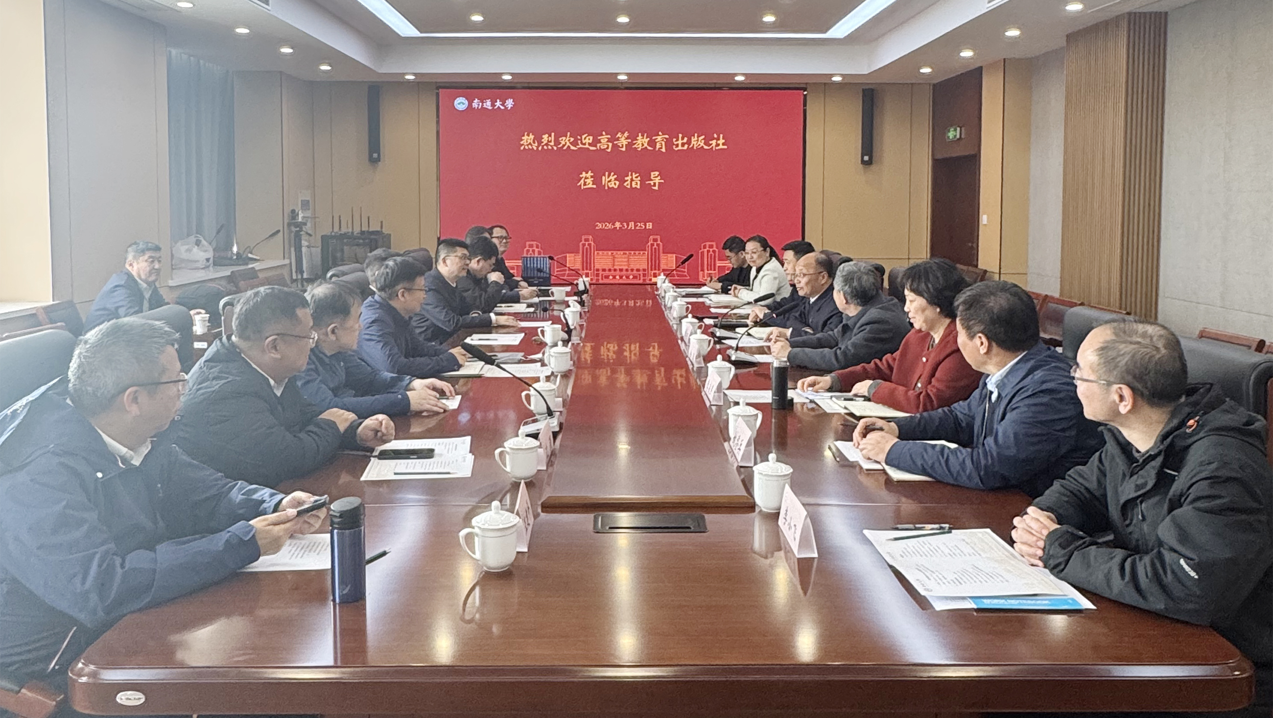 杨宇民代表学校对谭方正一行表示欢迎,并介绍了学校发展历程及教材建设工作取得的显著成效。他指出,高等教育出版社作为我国高等教育出版领域的标杆单位,在精品教材打造、数字教育资源建设、学术成果传播推广等方面始终走在行业前列。南通大学与高等教育出版社长期保持良好合作关系,此次调研交流为双方深化合作搭建了优质平台,也为学校进一步加强教材建设、优化学科布局,推动高质量发展、更好服务国家战略需求创造了有利条件。学校期待与高等教育出版社携手,在精品教材共建、数字教育资源生态打造、教材建设人才培养、教学改革与成果凝练推广等方面开展更广领域、更深层次的战略合作,凝聚合力为建设教育强国贡献更多力量。