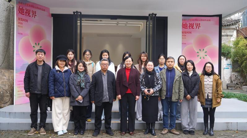 3月26日上午,我校艺术学院联合南通市美术家协会共同主办的“她视界”南通大学艺术学院女教师作品展在南通现代美术馆开展。副校长陈玉娟出席活动并观展。