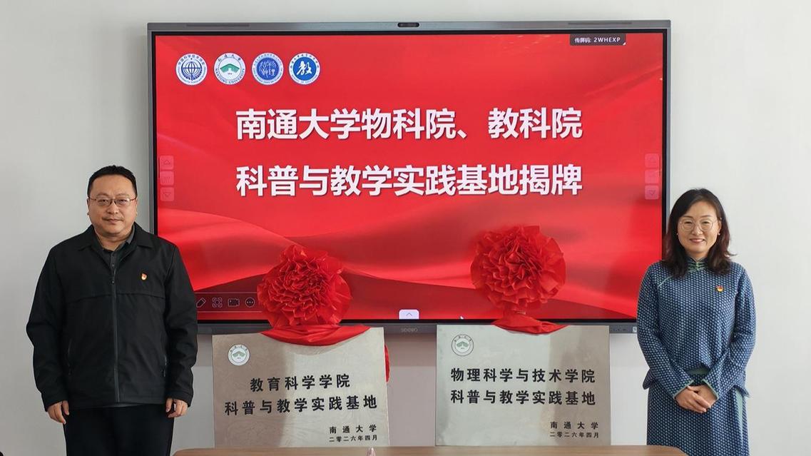 4月10日,物理科学与技术学院、教育科学学院与南通市科协开展党建共建暨科普科教资源共建共享合作签约仪式。校党委常委、副校长华亮,南通市科协党组书记、主席成媛媛共同为科普与教学实践基地揭牌。