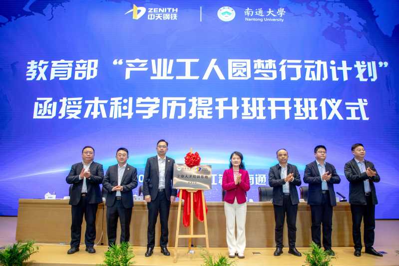 4月15日,我校与中天钢铁集团(南通)有限公司联合举办的教育部“产业工人圆梦行动计划”函授专升本学历提升班开班。开班仪式上,中天钢铁集团(南通)有限公司党委副书记沙卫东、校工会主席徐宇红共同为“企业人才培训基地”揭牌。