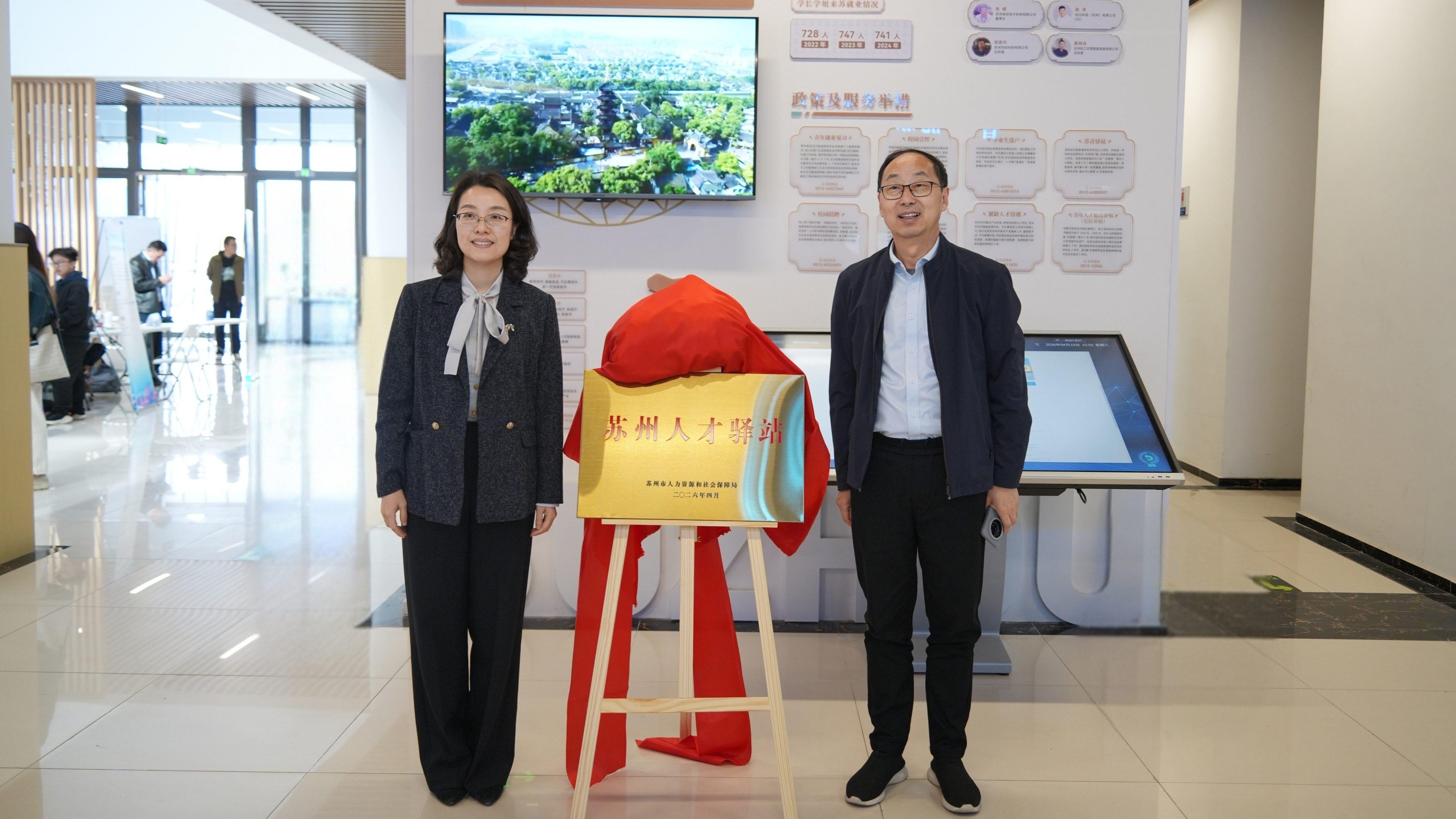 揭牌仪式上,苏州人才服务中心主任李健与学生工作处处长陈婷婷共同为“苏州人才驿站”揭牌。苏州人才驿站设于啬园校区41号楼一楼学生职业生涯发展中心,是苏州人才服务中心与我校深化落实此前签订的人才合作协议的重要成果,我校推进校地协同、精准就业服务的一次创新探索。驿站的启用将为学生提供日常化、近距离的就业服务,帮助学生不出校门就能常态化了解苏州、对接岗位,进一步打通校地协同育人、送岗到校的“最后一公里”。