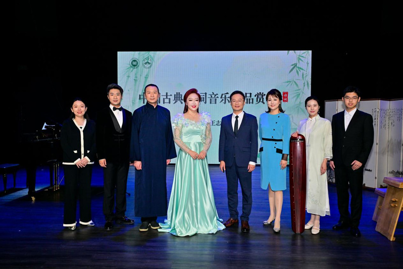 本次讲座以“一堂可听、可赏、可感的沉浸式美育课”为核心定位,由教育科学学院副教授王志国博士担任主讲,同时邀请多位跨领域专家学者、专业艺术表演者组成嘉宾团队,为现场师生呈现了一场诗乐交融、意蕴悠长的传统文化盛宴。讲座紧扣古典诗词与传统音乐深度融合的核心脉络,通过诗词文本解读、经典曲目演绎、现场作品展演等多元形式,引领在场听众沉浸式体悟古典诗词的文学意蕴、传统音乐的韵律之美,深入探寻中华优秀传统文化的精神内核与时代价值。活动现场,我校档案馆副馆长陈亮,附属医院文博中心主任、古琴艺术梅庵琴派代表传承人倪歌,北京航空航天大学副教授周晰丽,常州大学音乐学院院长助理、声乐教研室主任李继祯,武汉音乐学院青年教师裘舒涵,河北师范大学青年教师陈杨名,留美青年钢琴演奏家、南京审计大学金审学院教师蒋鹤如等嘉宾,分别从诗词朗诵、古琴演奏、声乐表演、钢琴伴奏等专业维度,为讲座提供坚实学术支撑与精彩现场演绎,全方位展现了古典诗词音乐的独特艺术魅力,赢得现场师生阵阵掌声。
