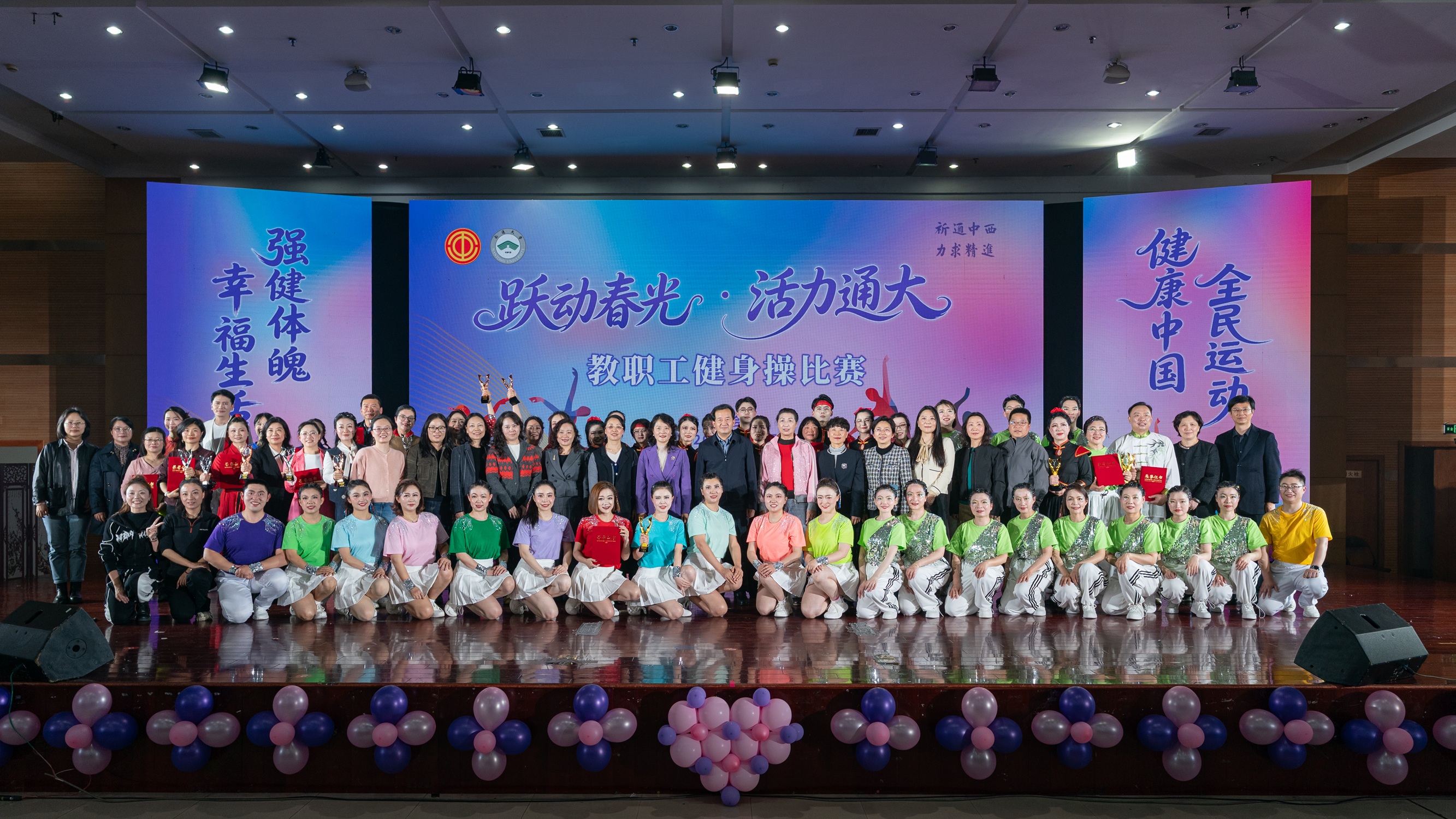 4月22日下午,我校“跃动春光·活力通大”教职工健身操比赛在啬园校区大学生活动中心举行。校党委副书记王卫东出席活动并致辞。来自全校各分工会的24支代表队300余名教职工参加比赛。