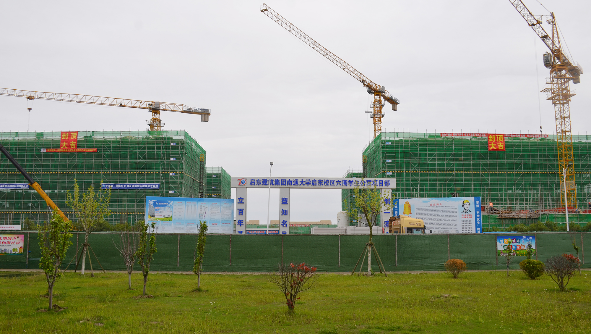 4月23日上午,启东校区六期学生公寓项目主体结构顺利封顶。校党委书记杨宇民出席仪式。