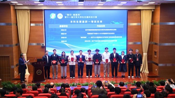 4月24日—25日,第十一届江苏大学生交通科技大赛在我校举行。来自全省25所高校的400余名师生共同探索大数据、数字孪生、人工智能、物联网、云边协同等新技术在江海联运、城市群交通、综合枢纽与低空经济等典型场景中的创新应用。教育部高等学校交通运输类教学指导委员会委员、校党委常委、副校长施佺,江苏省城市规划研究会副理事长兼综合交通专委会主任委员、江苏省城市科学研究会常务理事杨涛,江苏省综合交通运输学会副秘书长夏文俊等出席活动。