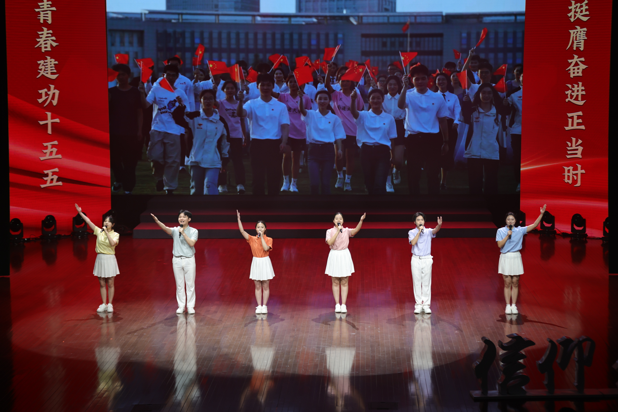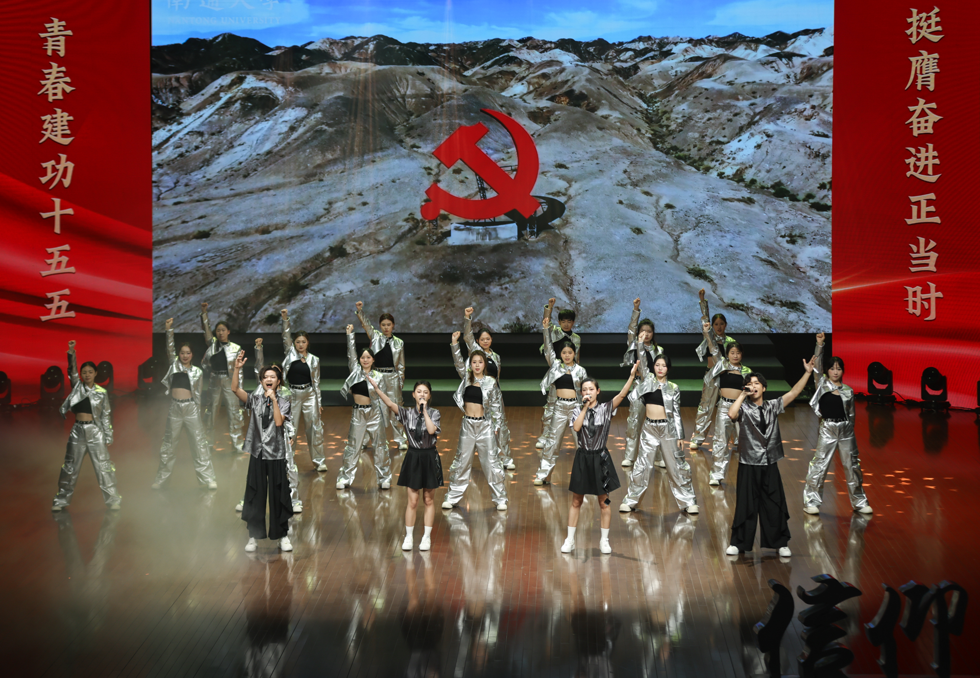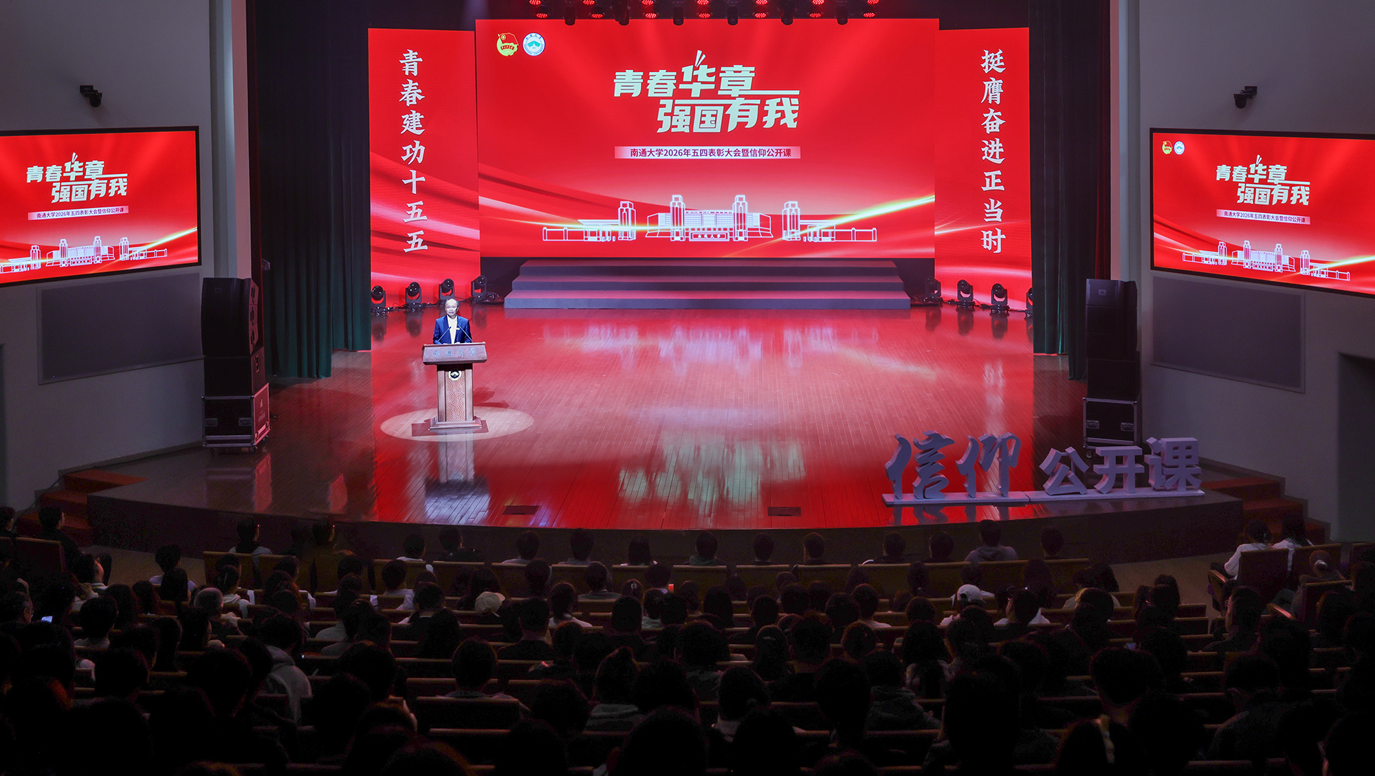 沉浸式信仰公开课贯穿于本次活动。通大青年与李大钊、茅以升、黄文秀、陈祥榕四位榜样人物跨越时空的对话,以不同年代的青春回答,感召通大青年以先辈为镜、向榜样看齐,在强国建设中书写属于自己的青春答卷。活动中,校青语讲师团陈习老师主题讲述《跨越百年的信仰》,带领大家重温早期共产党人的初心使命;第25届南通大学莫文隋研究生支教团团长邹胡健主题讲述《远山有回响》,深情诉说了通大青年扎根西部、服务基层的奋斗故事;歌舞《挑战无限》展现了通大学子勇攀科创高峰、敢闯敢试的青春锐气;朗诵《青春的答卷》以铿锵誓言回应时代之问,表达了强国有我的坚定信念。大会在歌曲《向光而行》的激昂旋律中落下帷幕,唱响了通大青年奋进新征程、建功新时代的青春强音。